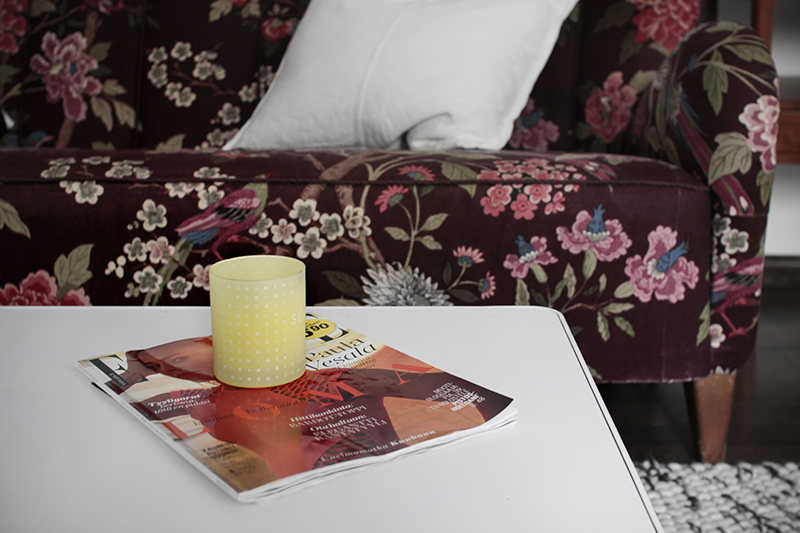 Kesäiltoina on ihana sytyttää kynttilä, se tuo kivasti tunnelmaa näin valoisanakin aikana. Tällä hetkellä lempparini on Skandinaviskin Sommar, se levittää ympärilleen hentoa, raikasta tuoksua. Väriä löytyy niin kynttilästä kuin sen ympäristöstäkin; reippaan kukkasohvan, persikkaisten lakanoiden, oranssin työvalaisimen ja värikkäiden pikku yksityiskohtien myötä ympärillä on juuri nyt enemmän väriä kuin aikoihin. Ihan virkistävää tämäkin, pieni reippaus sopii kesään kieltämättä ihan mukavasti. Ja tässä ihanassa kesän valossa kaikki väritkin näyttävät paljon heleämmiltä ja kauniimmilta, mikäs siis niitä suosiessa.