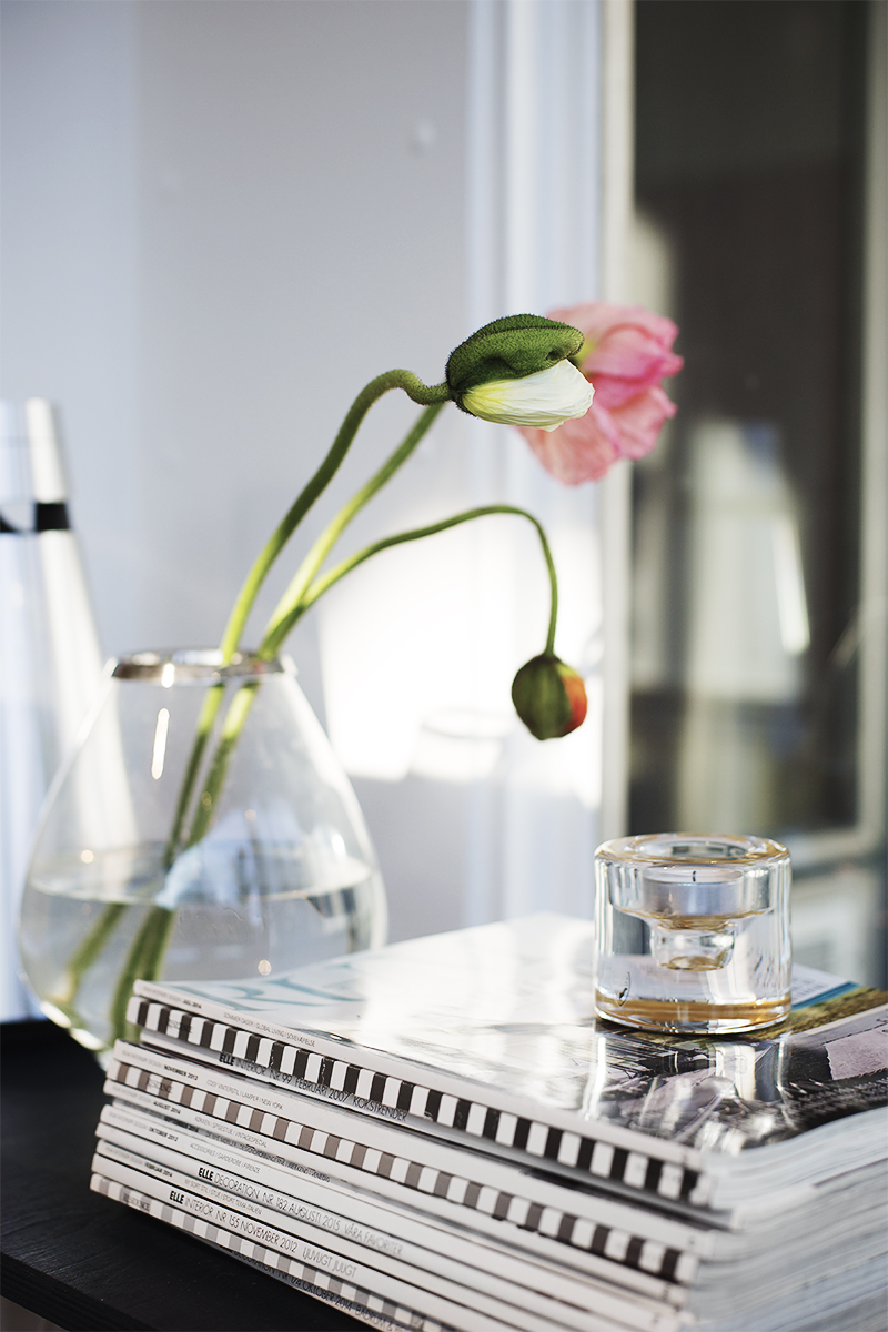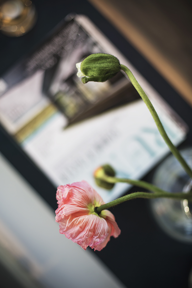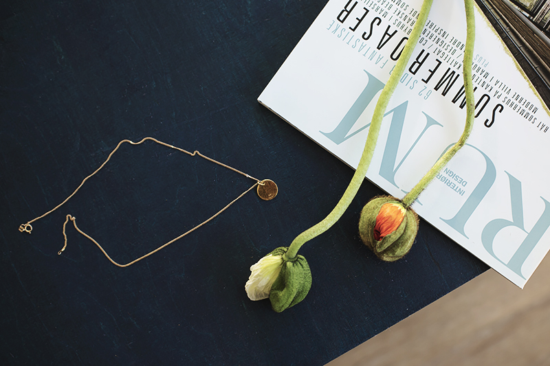 Some favourites of this day: poppies (I finally managed to find them), Flos IC suspension lamp, thin delicate necklaces and bright spring light. Have a happy week!
