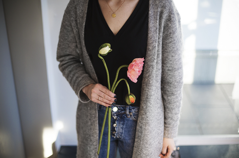 Some favourites of this day: poppies (I finally managed to find them), Flos IC suspension lamp, thin delicate necklaces and bright spring light. Have a happy week!